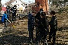 Сегодня учащиеся школы вышли на субботник около памятника ВОВ.