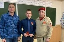 Кочневу Артему ученику 10а вручена медаль "юнармейской доблести" 1 степени.