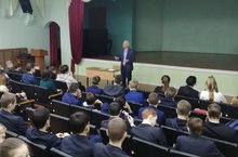 Представитель социально-гуманитарного техникума выступил перед учениками 8-9 классов по вопросам профессиональной ориентации, об условияхи обучения в техникуме.