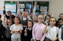 Учащиеся 4Б класса провели классный час "Наша планета в наших руках" (Раздельный сбор мусора). Урок был проведен для учащихся 3Б класса.