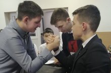 Сегодня в фойе нашей школы для учеников 5-10 классов прошли испытания по армреслингу, канату, викторины, обруч и пинг-понг. Провел это мероприятие актив школы во главе с ребятами 11 класса. Участники весело провели время и даже получили призы!