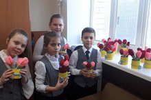 Учащиеся 4В класса сделали подарок ко Дню Мам. Изящные бутоны в ярких вазочках порадуют наших любимых мамочек в морозный денек.