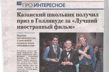 Ученик нашей школы Мавлютов Игорь получил приз в Голливуде "За лучший иностранный фильм"