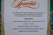 8нче В сыйныфы укучысы Мөбәрәкҗанова Аделя шәһәр күләмендә үткәрелгән Аяз Гыйләҗев исемендәге I нче фестиваль-конкурсында катнашып, II нче урынга лаек булды. Аделяга иҗади уңышлар телибез!