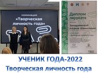 Поздравляем ученицу 10А класса Закирзянову Айзилю - Лауреата Республиканского этапа Всероссийского конкурса «Ученик года-2022» в номинации «Творческая личность года» . МОЛОДЕЦ!!!