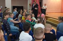27 июня. К нам, в пришкольный лагерь "Солнышко", приехали артисты со спектаклем. Ребята посмотрели спектакль "Каникулы Диппера и Мэйбл". Они были не только зрителями, но и принимали активное участие в спектакле.