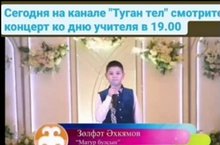 «Туган тел» современный телеканал, вещание которого ведется на трех языках. 5 октября ученик 4-го класса Ахкамов Зульфат выступил в телевизионном концерте ко Дню учителя.