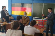 Сегодня состоялась встреча с ветераном Афганской войны,выпускником нашей школы Алимовым Талгатом. Юнармейцы возложили цветы к памятнику погибшим в годы ВОВ. Учащиеся 7-8 класса подготовили презентацию о ветеранах-афганцах. Посетили школьный музей, где размещена обновленная экспозиция"Афганский ветер".