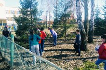 19 апреля 2016 г. - День экологии. Учащиеся начальных классов вышли на уборку территории памятника ВОВ.