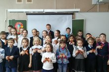 В рамках недели добра 5-ти классники рассказали 1 классникам о Георгиевской ленточке, о ВОВ и героях России