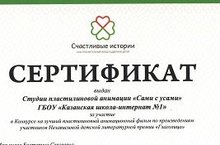 Студия пластилиновой анимации "Сами с усами" ГБОУ "Казанская школа-интернат №1" , которая существует уже второй год, учавствовала в конкурсе на лучший пластилиновый анимационный фильм по произведениям участников Независимой детской литературной премии "Глаголица".