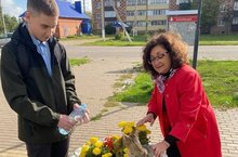 Учащиеся 11 класса набрали воду из чаши в ладони и полили из рук цветы рядом с памятником «Победы» – таким образом символически поделиться водой с теми, кого уже с нами нет. -