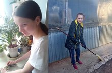 Девочки 5б класса участвуют в весенней акции "Чистый дом, чистый двор".