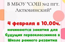 В МБОУ "СОШ №2 пгт Актюбинский" 4 февраля в 10 :00 начинаются занятия для будущих первоклассников.