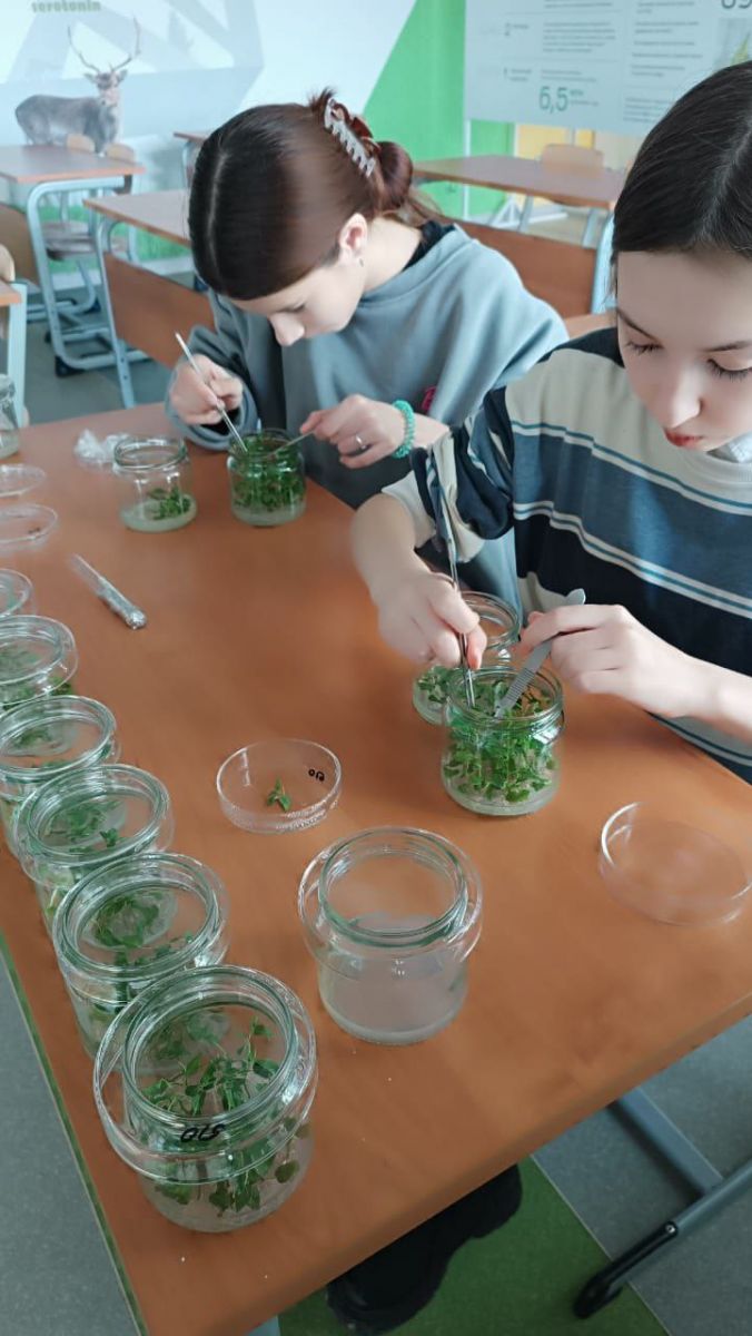 Сегодня в нашей школе было открытие недели "Точки роста". На внеурочном занятии под руководством Ляли Вакильевны ученики изучали методы адаптации растений к нестерильным условиям с использованием набора инструментов и РН датчиков.