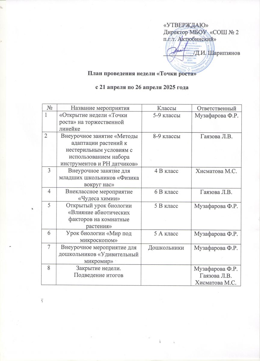 С 21 по 26 апреля в нашей школе проводится неделя "Точки роста". План недели.