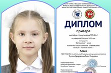 Поздравляем ученицу 1В класса Зайнутдинову Айзию, ставшую ПРИЗЁРОМ олимпиады WINKID по математике, организованной МО и Н РТ, КФУ в г. Казань. Желаем дальнейших успехов и больших побед! ????