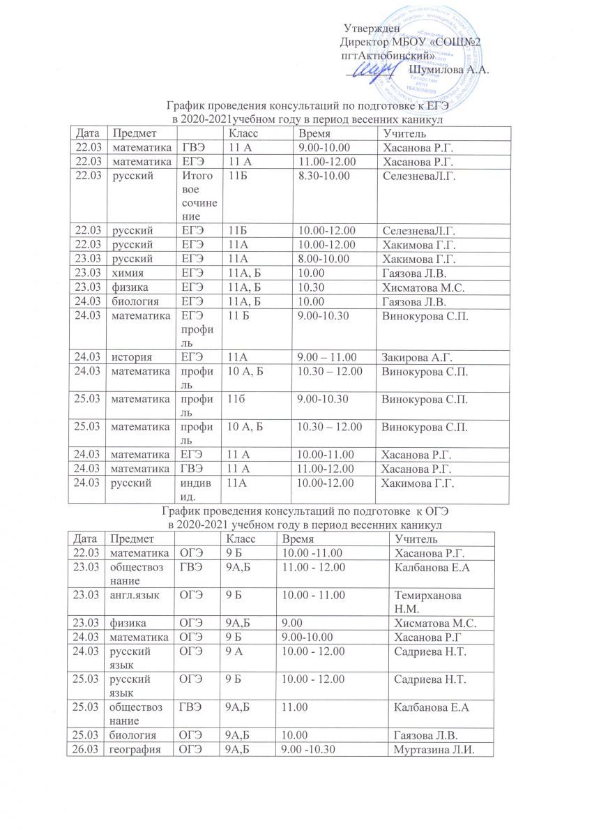 График проведения консультаций по подготовке к ЕГЭ,ОГЭ,ГВЭ 21.03.2021