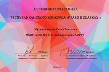 "Не позволяй душе лениться..."Ученица 6в класса Риана Мухаметзянова участвовала в Республиканском конкурсе Российского университета правосудия "Право в сказках" и получила достойное признание. Риана всегда участвует в конкурсах школьного уровня и это её первый выход в Республику. Поздравляем! Желаем дальнейших успехов.