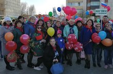Сегодня коллектив нашей школы участвовал на параде 1 мая./Бүген мәктәбебез коллективы 1 майга багышланган парадта катнашты.