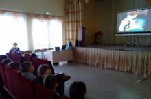 На неделе английского языка в актовом зале после уроков был организован просмотр мультфильмов на английском языке. Обучащиеся начальных классов с удовольствием посмотрели и обсудили «Питера Пэна» Дж.Барри.
