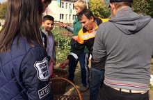 Волонтёры школы,7Б класс, провели акцию "Добрые руки",поделившись дарами своих осенних садов с прохожими.