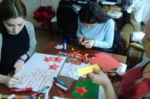 СМС дети готовят поздравительные листовки к празднику 23 февраля