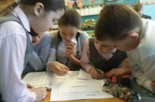 Сегрдня в 5а классе (Учитель Мифтахова С.Н.) была проведена викторина, в которой приняло участие 10 учеников. Дети разделились на две команды и выбрали капитана. Получив соответствующие названия «Крестики» и «Нолики» начали выполнять задания.