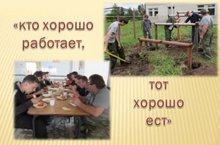 В трудовом лагере кипит работа. Юноши 10-х классов установили металлические конструкции, девочки занимались прополкой. Вот и обед «кто хорошо работает, тот хорошо ест».