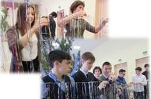 18.12.15 все 9.10,11 классы после уроков украшали школу и ёлку для проведения новогодних праздников. -
