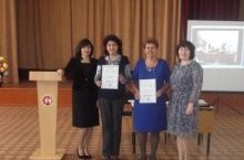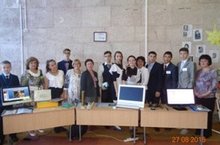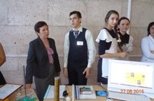 Групповая фотография секции учителей физики, участвующих в выставке работ, посвященных Году физики на августовском пленарном заседании педагогов района. От нашей школы Зайнуллин Марат, ученик 11 класса и учитель физики Хисматова М.С.