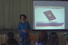 1.12.2014 г. В нашей школе были вручены паспорта учащимся, достигшим 14 летнего возраста. Вручение паспортов провела Газизова Эльвина Ринатовна - начальник отдела УФМС России. Глава посёлка Галеева Роза Алмасовна поздравила ребят с этим торжественным днём и вручила небольшие подарки от партии «Единая Россия». Учителем истории Закировой А.Г. было подготовлено интересное выступление об истории возникновения паспорта.
