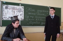 5 марта в 9а классе прошел необычный урок литературы «Как грустна наша Россия». Мы закончили изучение поэмы Н.В.Гоголя «Мертвые души». В среду мы разыграли суд над помещиками Маниловым, Ноздрёвым, Коробочкой, Собакевичем, Плюшкиным, Чичиковым. Наши одноклассники (Пузырев А., Муртазин К., Абравникова Э., ГумеровА., Салимов Д., Зайнуллин М.) вошли в роль и правдиво изображали героев произведения. Несмотря на старания адвоката (Салун К.) помещики были осуждены, прокурор (Гарипова М.) и судья (Хасаншин Р.) вынесли приговор, который обжалованию не подлежит.