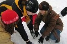 Учащиеся 11классов под руководством классных руководителей начали лепку снежных фигур напротив здания школы.