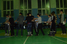 Под руководством учителя физической культуры Илюхина И.Э. сегодня после уроков прошло спортивное мероприятие - перетягивание каната. Все классы приняли активное участие всем классом. В стороне не остались и педагоги школы, которые вместе с детьми перетягивали канат. Самыми сильными оказались ученики 9б, 10а,11б кл.