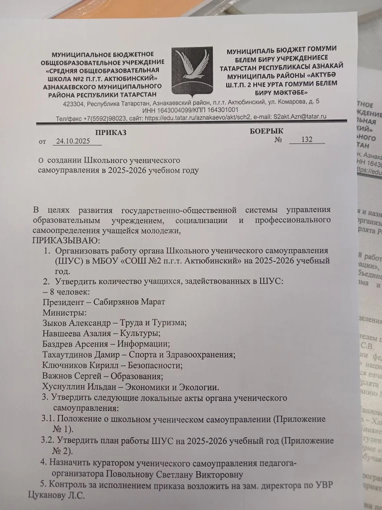 Муниципальное бюджетное общеобразовательное учреждение «Средняя общеобразовательная школа №2 пгт Актюбинский» Азнакаевского муниципального района Республики Татарстан / Муниципаль бюджет гомуми белем бирү учреждениесе Татарстан Республикасы Азнакай муниципаль районы Актүбә ш.т.п. 2 нче урта гомуми белем бирү мәктәбе