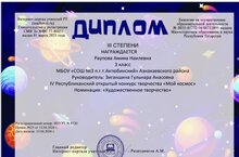 Поздравляем ученицу 3 класса Раупову Амину с призовым 3 местом в Республиканском открытом конкурсе "Мой космос".