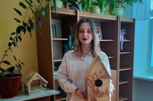 Фабричникова Дарья, ученица 8 класса, член школьного лесничества "Зелёная планета" участвует природоохранной акции "Каждому скворцу по дворцу".