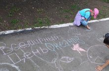 Сотрудники ДК имени Гагарина приготовили для детишек конкурс рисунков на асфальте "Народные узоры", где ребята показали своё мастерство и умение.