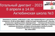 Хөрмәтле ата-аналар, укытучылар һәм укучылар! 8 апрельдә 14.00 сәгатьтә барлык теләүчеләрне "Тоталь диктант"ка чакырабыз.