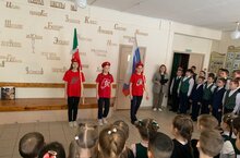 Бүген башлангыч сыйныф укучылары өчен тантаналы рәвештә Россия Федерациясе һәм Татарстан Республикасы флагларын чыгару һәм кертү белән традицион атналык линейка узды.