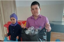 Учащиеся 3 класса Муллина Аиша и Салахов Ильназ участвуют в акции "Пластиковой бутылке-вторую жизнь".
