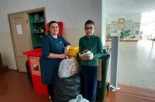 3 нче сыйныф укучысы Жилин Ярослав һәм аның гаиләсе табигатьнең экологик торышын яклауда. Алар "Пластик шешәгә-икенче тормыш"акциясендә катнашалар.