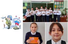 3 сыйныф кызлары малайларны Ватанны саклаучылар көне белән котладылар. Кадерле малайлар , сезне 23 февраль белән котлыйбыз, сез-булачак Ватанны саклаучылар! Сез һәрвакыт әзер торырга кызларны яклыйсыз, ярдәм итәсез һәм без моны бик бәялибез. Һәрвакыт шундый игелекле, яхшы булып калыгыз, «бишле» гә укыгыз, сыйныфташларны, ата-аналарны һәм укытучыларны сөендерегез. 23 февраль бәйрәме белән!