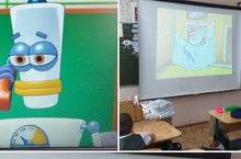 Химия атналыгы кысаларында 2 нче сыйныф укучылары "Кызыклы химия "дигән мультфильм карадылар. Куян, Робот һәм Филин химик процесслар турында күп кенә кызыклы нәрсәләр сөйләде.