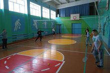Учащиеся 5 класса на каникулах учились играть в бадминтон в спортивном зале школы.