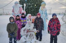 Учащиеся 4 класса весело проводят время во время каникул в новогоднем городке.