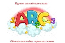 В школе открывается кружок английского языка, где дети познаклмятся с английским алфавитом, особенности произношения, грамматические конструкции и чтение.