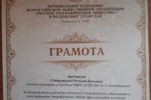 Учитель географии Сабирзянова Р. Н. участвовала на выездном заседании тематической комиссии "Географическое и экологическое образование" регионального отделения ВОО "Русское Географическое общество" в Республике Татарстан.