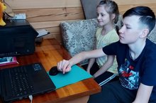 Каникулы с пользой. Ребята знакомы с платформой " Открытый урок" и с удовольствием просматривают видеоурок "Театр-сила искусства" в рамках Дня Театра.